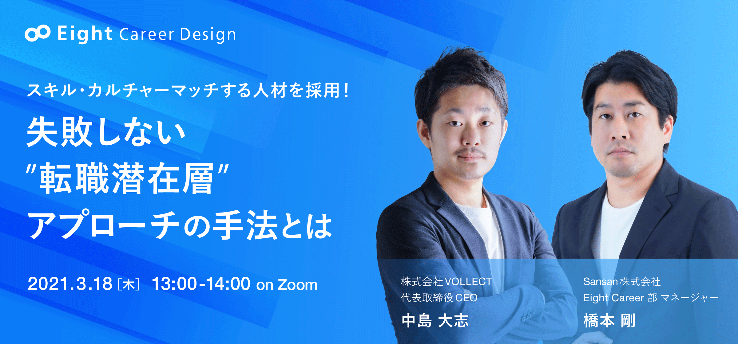 そこで今回は100社以上の採用支援に関わってきた株式会社VOLLECT代表の中島様をお招きし、転職潜在層にアプローチするメリット/デメリットや具体的な手法についてお話します。新たな採用手法をご検討中の方は、この機会にぜひお申し込みください。