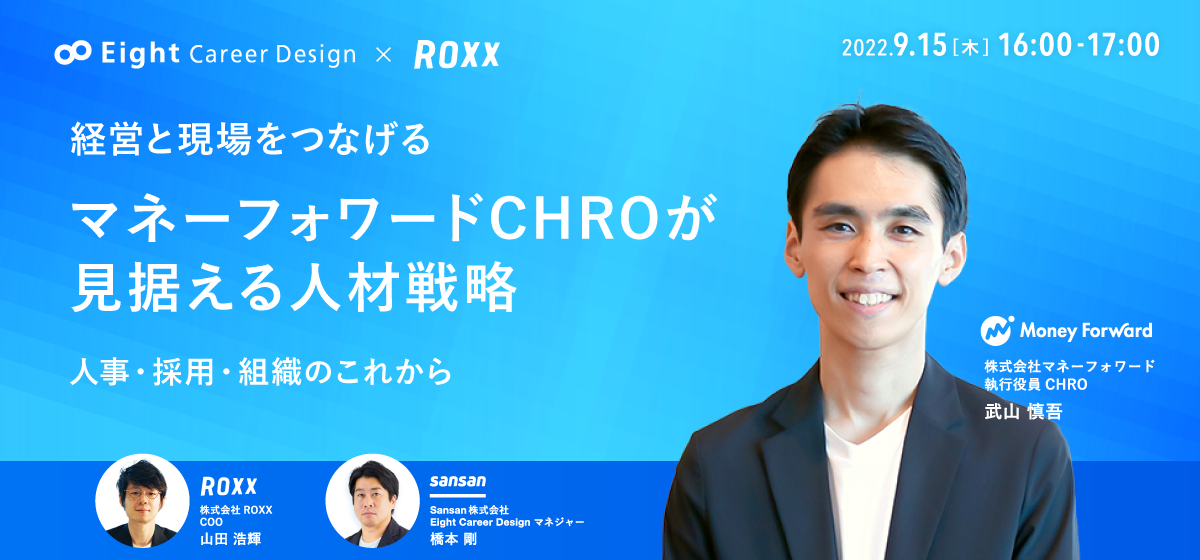 そこで今回は、株式会社マネーフォワードCHROの武山様をお招きし、CHROが考えるこれからの人材戦略を、採用・組織・人事の役割の観点からお話しいたします。