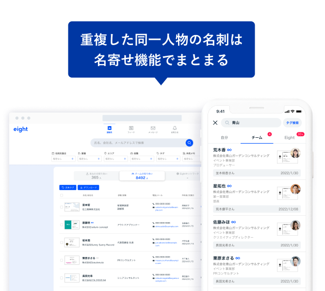 Eight Teamは名刺を複数人で共有できる法人向けサービスです。