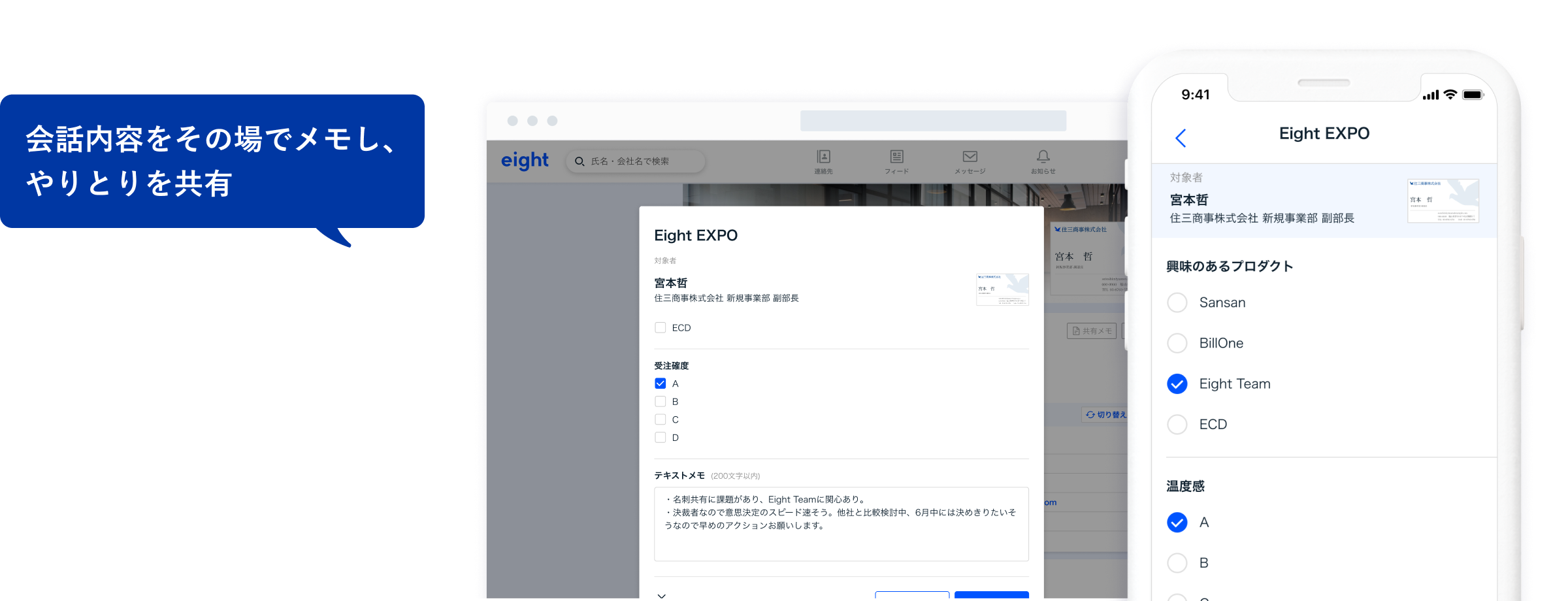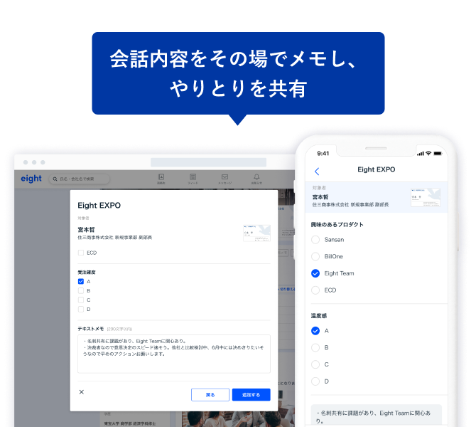 Eight Teamは、法人向け名刺管理サービスの業界シェアNo.1のSansanが提供する、