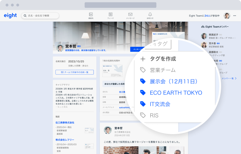 チームで名刺を共有し、