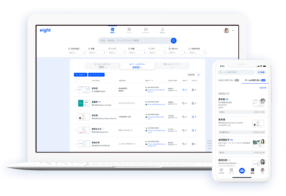 名刺管理アプリNo.1*2の「Eight」をそのまま利用可能できて安心。