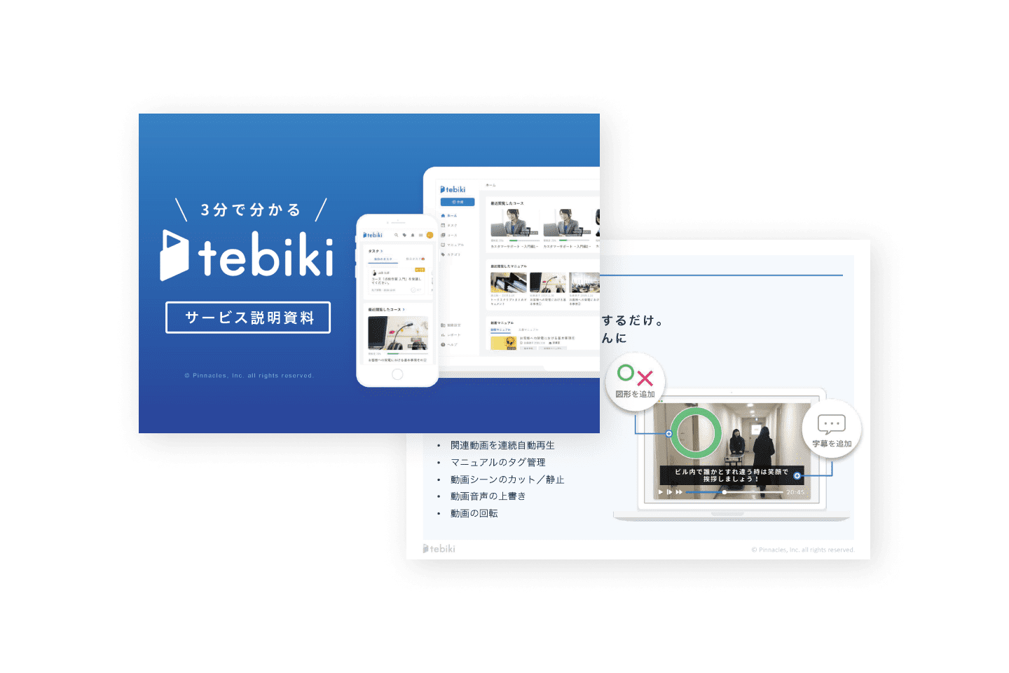 「クラウド動画教育システム tebiki」は、動画マニュアルを現場スタッフがかんたんに作れる新人教育システムです。字幕も翻訳もシステムが自動生成、様々な用途に動画を活用できます。