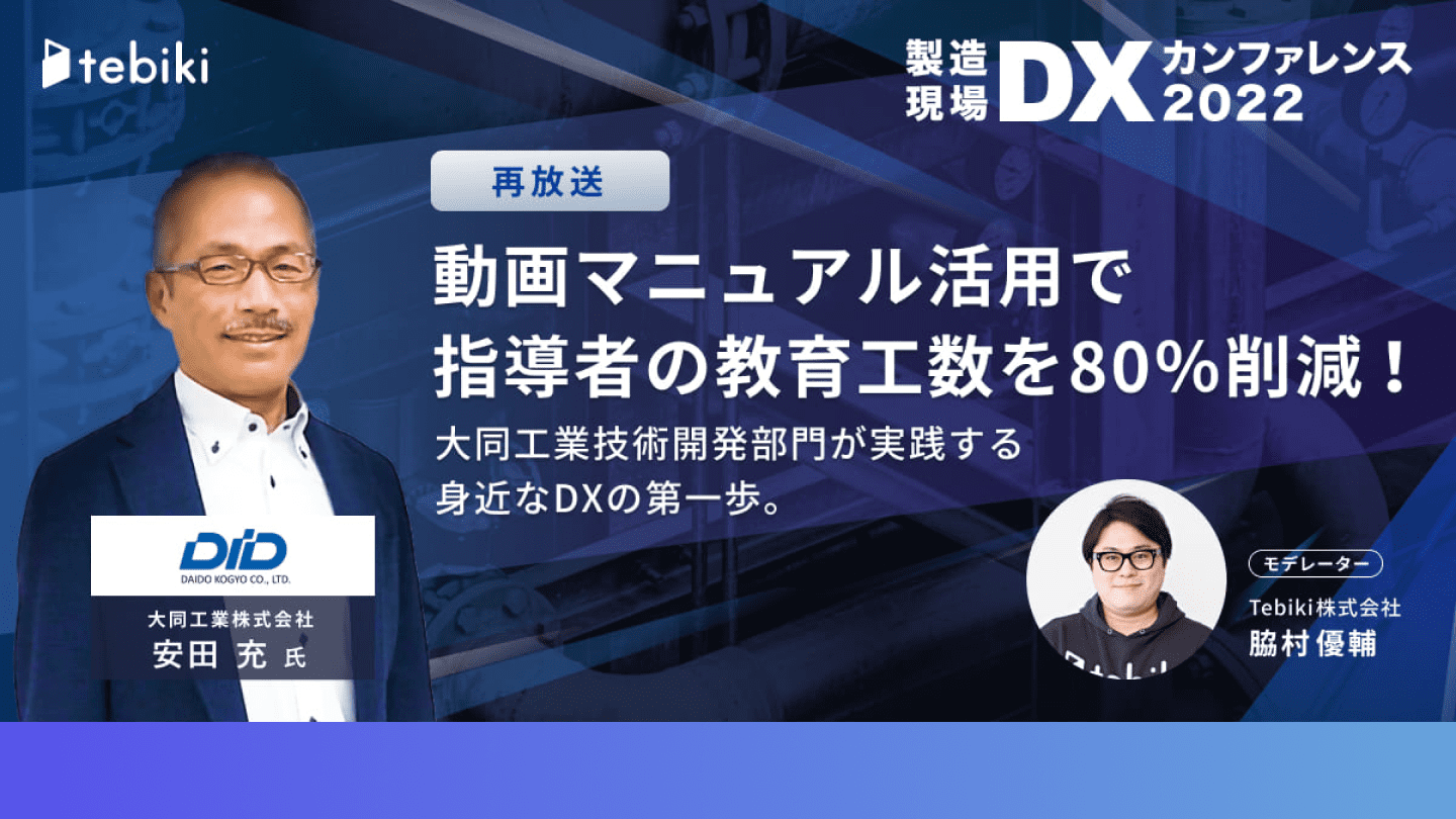 「現場力」を高めることで大きな成果を挙げてきた日本企業。しかし、COVID-19による予測不可能な時代、人口減少に伴う深刻な働き手不足など、現場の未来は大きく揺らいでいます。競争力の源泉である「現場力」。本セミナーでは、どの部門からでも始められる身近なDXの第一歩を大同工業株式会社様の事例をもとに解説します。