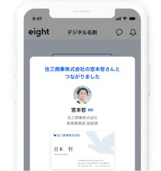 隣の同僚とデジタル名刺を渡して、「♪エイト」を鳴らしてみましょう