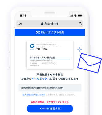 デジタル名刺をメールBoxで保存してもらいましょう。