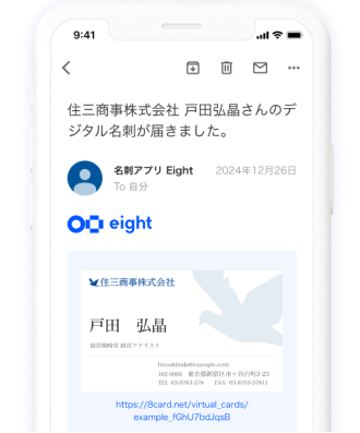 相手にメールでデジタル名刺が届けば 受け取り完了です。
