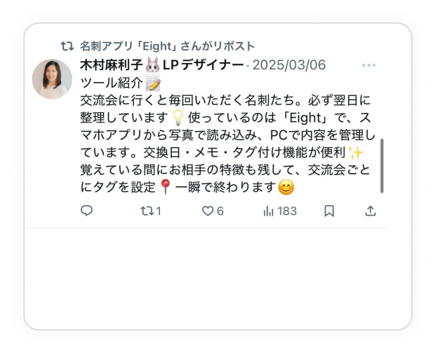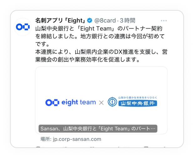 - 対象 名刺アプリ「Eight」を登録している方